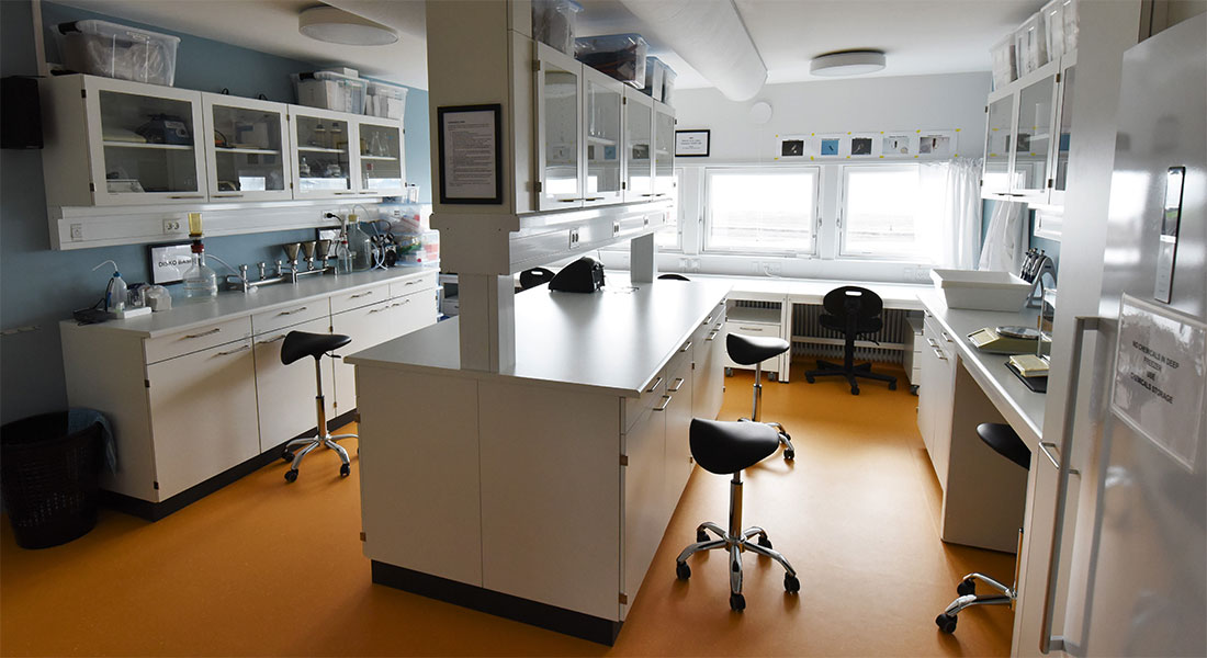 The laboratory ( first floor) consist of two rooms for with different standard equipment, e.g. balances, glassware, fridge, freezer and dishwasher. Guests are expected to bring own specific equipment (please info the secretariat if you bring bulky lab equipment).